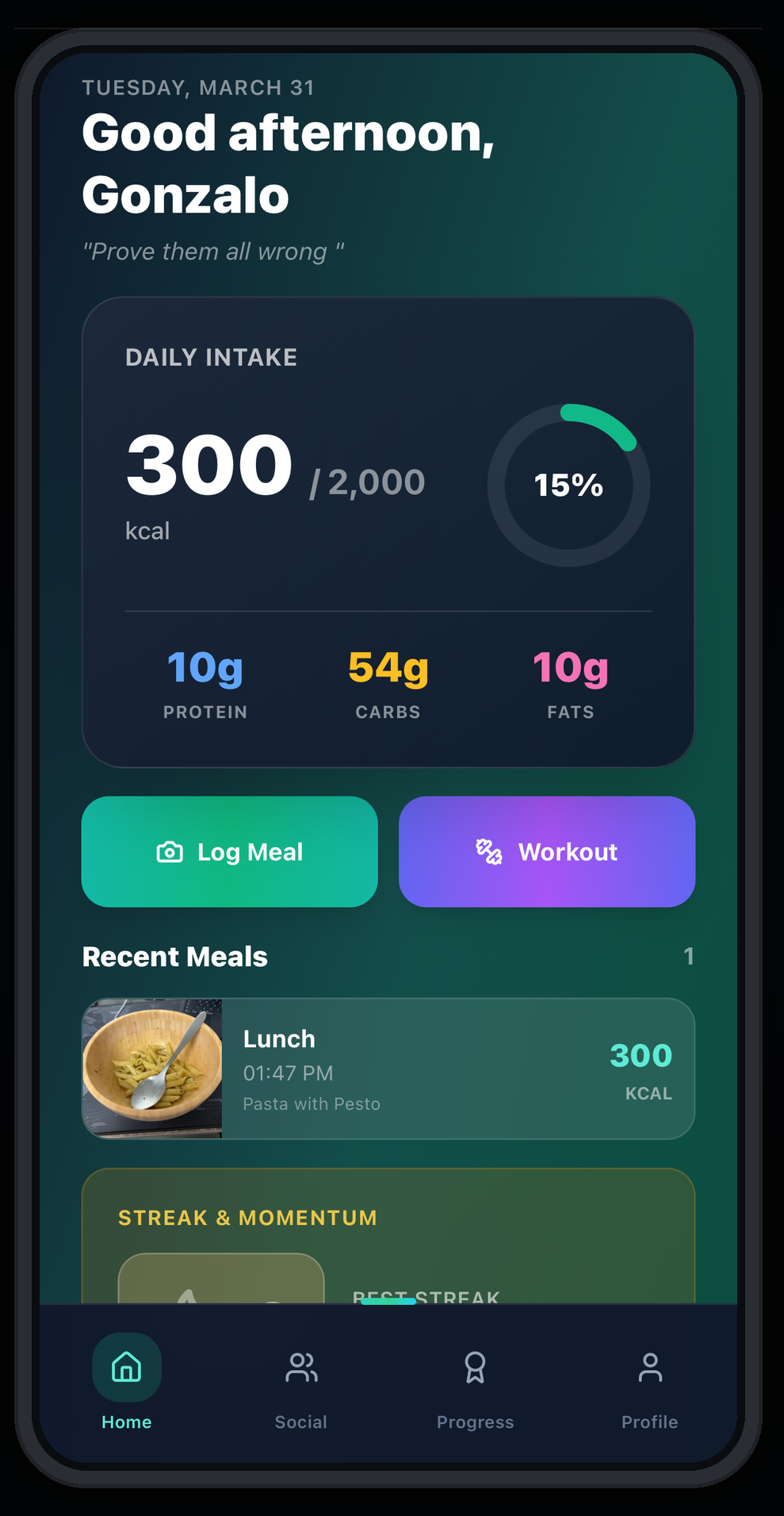 Progress: Track momentum, not just calories.